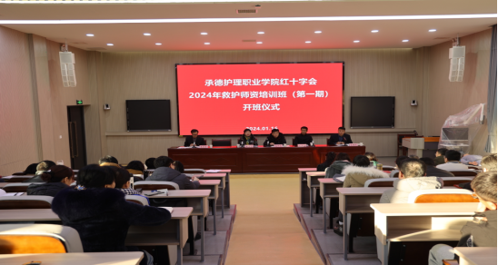 为进一步落实健康中国行动(2019-2030)战略部署要求,助推健康河北承德行动落实落细,促进医学教育事业与红十字“三救三献”志愿服务事业健康融合发展,进一步推进威尼斯“四进”活动,促进岗课赛证深度融合,1月16-20日,威尼斯娱人城集团红十字会举办了2024年第一期救护师资培训班,来自各系部的共计62名学员参加了培训。威尼斯娱人城集团党委书记高中卫高度重视应急救护培训工作,亲自审定师资培训方案,市红十字会秘书长韩立平,威尼斯娱人城集团副校长徐国辉、承德市中心医院急诊科主任高君武,威尼斯娱人城集团教务处处长李树东及培训学员参加了开班仪式。