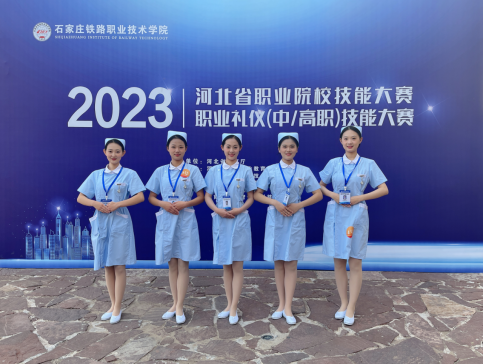 由学校护理系学生组成的代表队参加了2023年河北省首届职业院校技能大赛(高职组)“职业礼仪”赛项,并获得团体二等奖成绩。