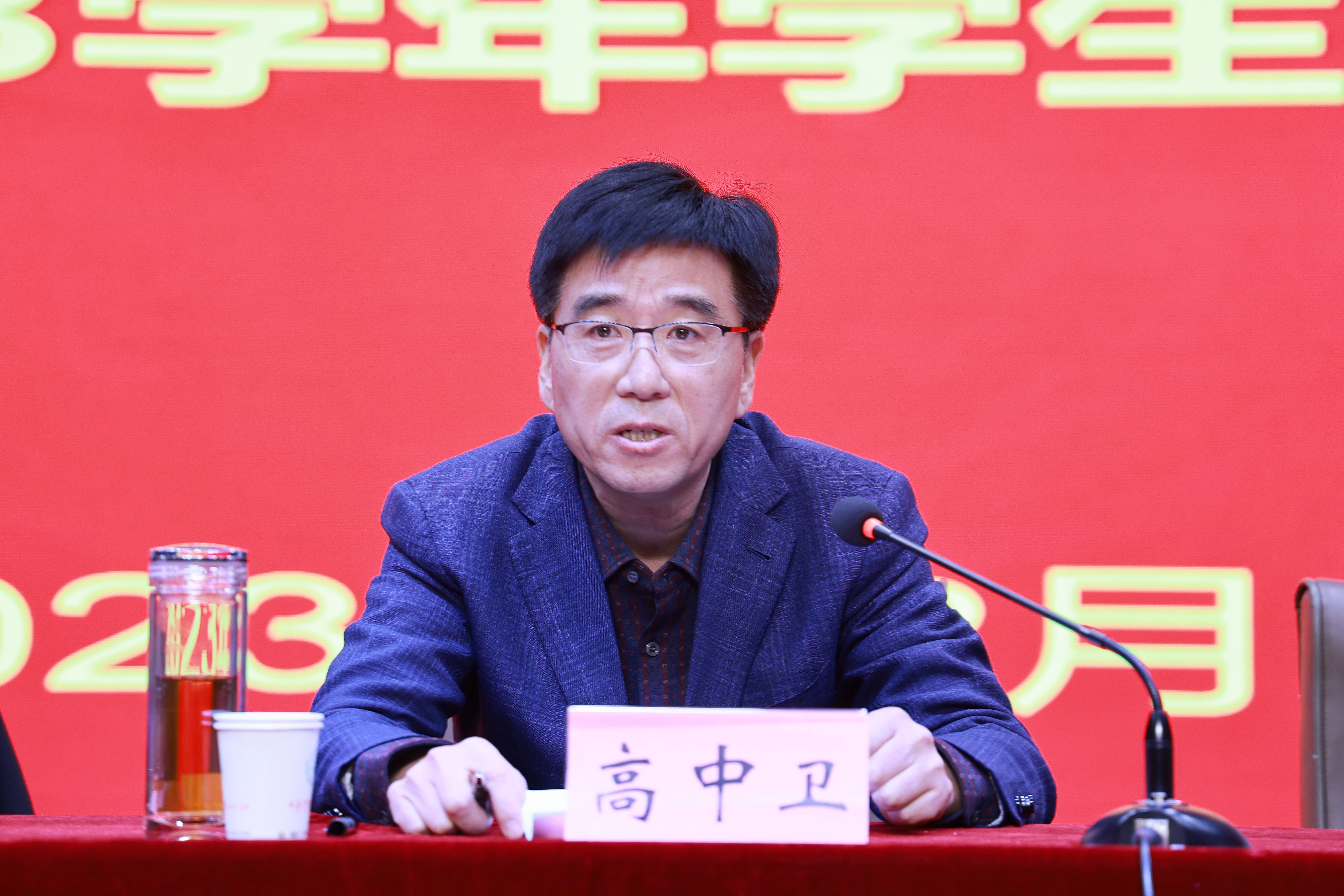 会上,高中卫对获奖个人和集体表示热烈祝贺,向一年来辛勤工作在学生教育、教学、管理和服务岗位上的教职工,以及支持学生工作的各位同志表示衷心的感谢!向全体青年同学致以诚挚的问候!向出席本次会议的承德颈复康药业集团有限公司的各位嘉宾表示热烈的欢迎!高中卫在讲话中对学校一年来的学生工作给予了充分的肯定,并指出受到表彰的先进集体和个人,是威尼斯娱人城集团学生工作干部和全体学生的优秀代表,是学院良好学风、校风的集中表现,是学院蓬勃发展的中坚力量,并由衷地希望受到表彰的先进个人和先进集体珍惜荣誉、谦虚谨慎、戒骄戒躁、再接再厉,不断取得新的更大的成绩,广大教职工和同学们要以受表彰的先进个人和先进集体为榜样,在未来的工作中和成长道路上奋发图强、力学力行,时刻保持不断学习、初心不改、昂扬向上的进取状态。最后对学生管理工作提出三点希望,一是要有坚定的理想信念。二是要有明确的目标规划。三是要有踏实的行动作为。