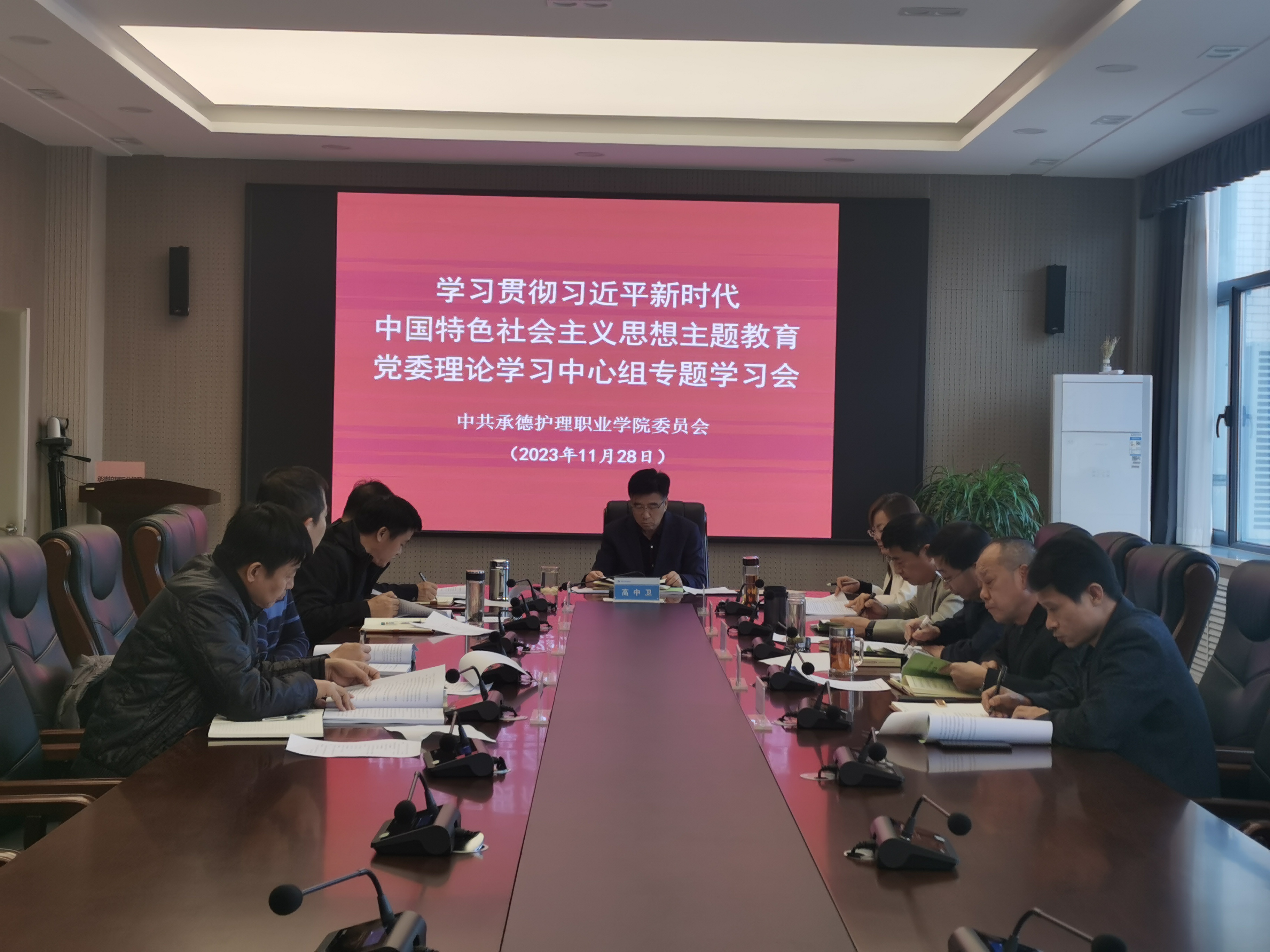 11月28日,党委书记高中卫主持学习贯彻习近平新时代中国特色社会主义思想主题教育党委理论学习中心组专题学习会,集中学习了习近平总书记关于以学增智的重要要求,习近平总书记对河北、对承德工作的重要指示精神,习近平总书记关于教育、高等教育和职业教育的重要讲话和重要指示精神,与会同志认真讨论并交流了学习体会。