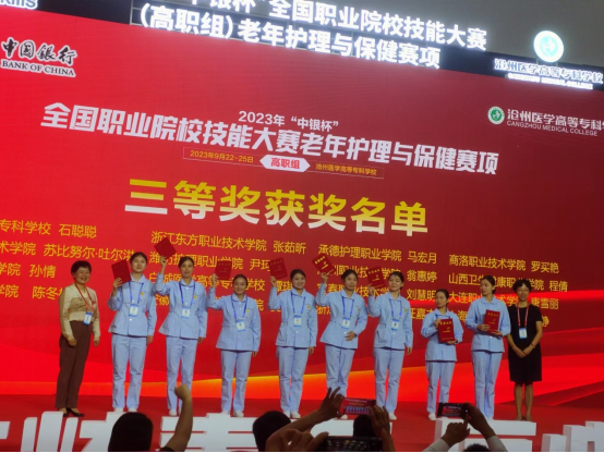 9月24日,由教育部主办、河北省教育厅承办的2023年全国职业院校技能大赛高职组老年护理与保健技能比赛在沧州医学高等专科学校顺利落下帷幕。威尼斯护理系2021级老年保健与管理专业学生马宏月作为参赛选手代表河北省参加比赛,并荣获三等奖,为河北省和学校争得了荣誉。