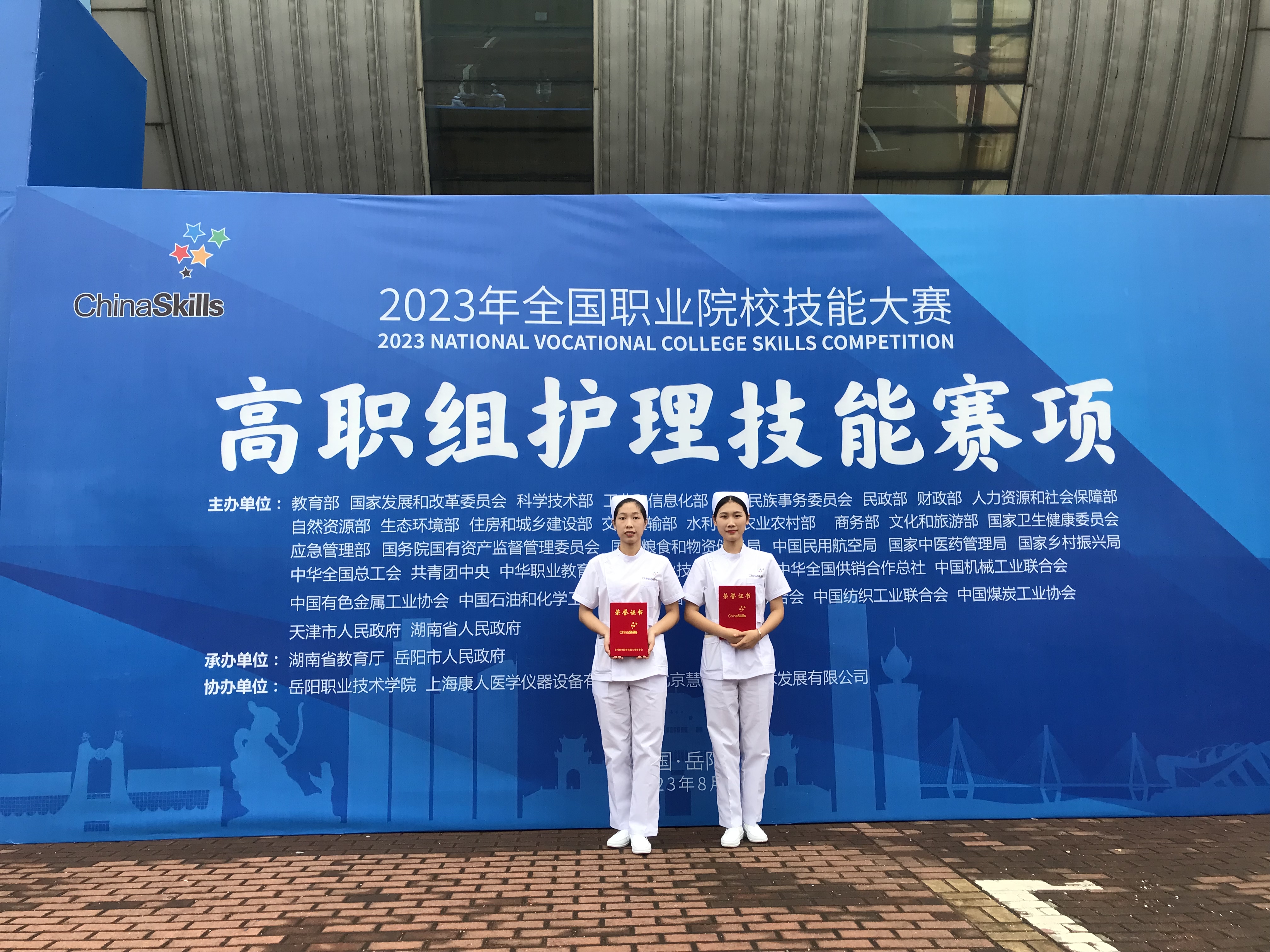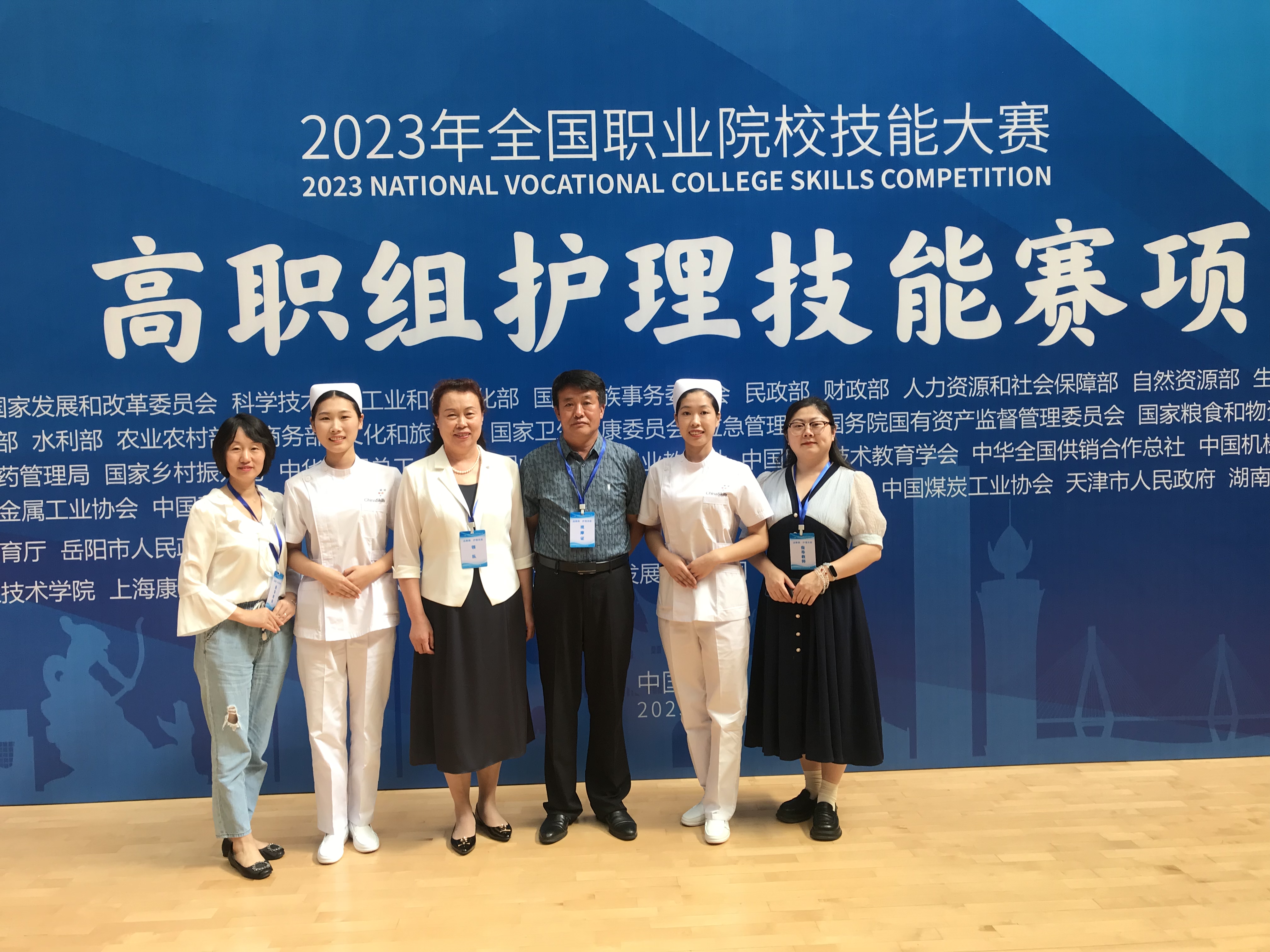 8月24日,由教育部牵头发起,湖南省教育厅、岳阳市人民政府承办,岳阳职业技术学院协办的2023年全国职业院校技能大赛高职组“护理技能”赛项在湖南省岳阳市举办。由威尼斯涉外护理系主任谭淑娟领队,路雪燕和王吉为指导教师,吴清玉和张晓丽同学组成的参赛队代表河北省参加此赛项比赛,并荣获团体三等奖,为河北省和学校争得了荣誉。