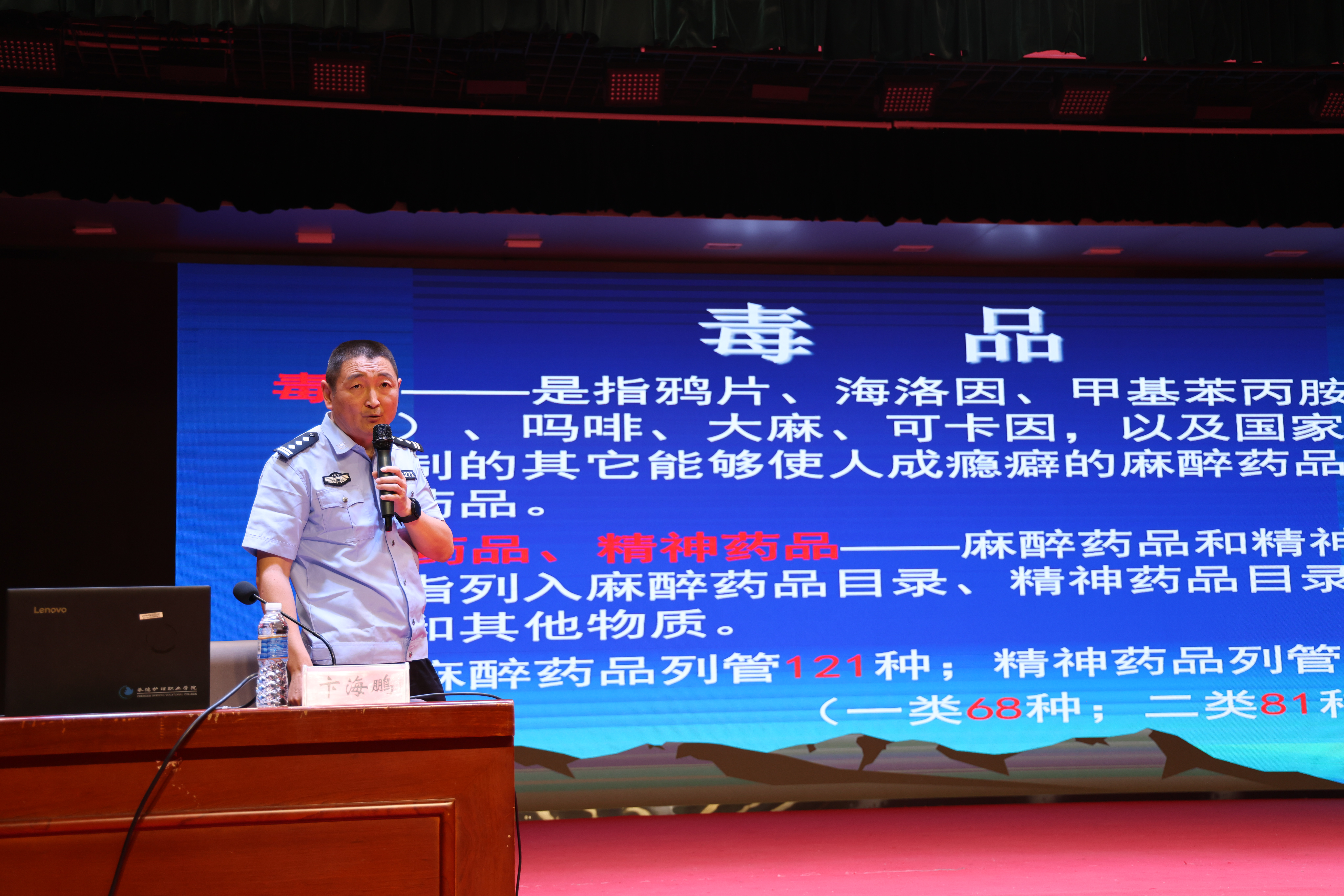 为深入贯彻落实习近平总书记关于禁毒工作重要指示精神,做好大学生毒品预防教育,切实提升大学生的禁毒知识知晓率,有效增强大学生识毒、防毒、拒毒的意识和能力,6月27日下午,威尼斯在三号教学楼五楼会议厅隆重举行“防毒禁毒 护航青春”主题讲座。讲座特邀请承德市禁毒支队一大队副大队长卞海鹏主讲。共青团承德市委学校和少年发展部张雪飞、学校办公室副主任潘嵩出席讲座,学校团委书记杜海然主持讲座。