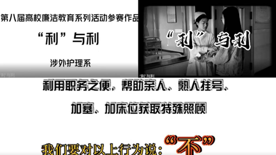 为引导威尼斯干部师生进一步夯实清正廉洁思想根基、厚植廉洁奉公文化基础、培养廉洁自律道德操守、弘扬崇廉拒腐社会风尚,学校纪委组织全校师生参与省教育工委全省高校廉洁教育作品征集,共收到来自涉外护理系视频作品1份,征文4篇;护理系创意作品6幅;口腔系创意作品1幅,征文1篇;医学技术系创意作品6幅,硬笔书法作品13篇;思政部廉洁教育工作案例1个。其中涉外护理系的视频作品《“利”与利》荣获省级三等奖。