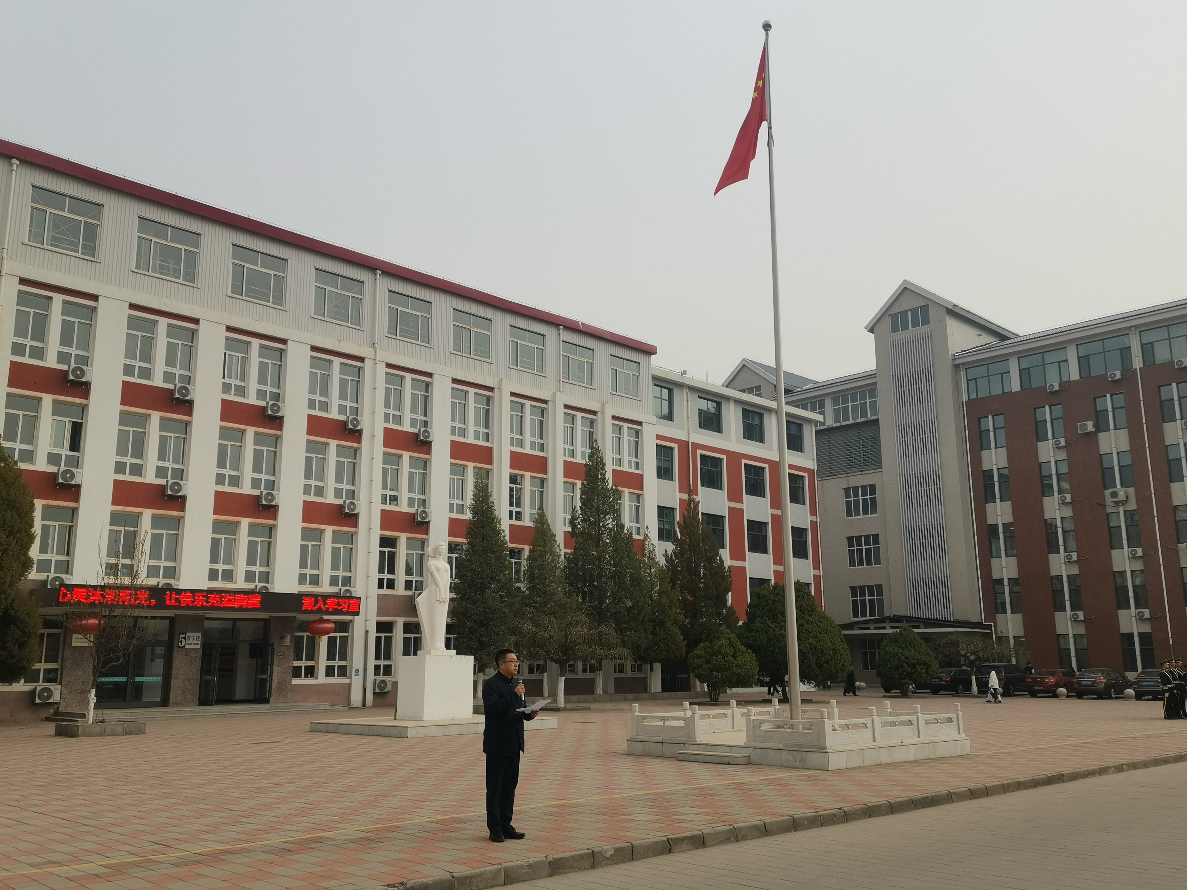 上午7点40分整,“国旗护卫队”同学迈着矫健的步伐,庄严地走向升旗台,鲜艳的五星红旗冉冉升起。师生们面向五星红旗行注目礼,高唱国歌,表达对祖国的赤诚之心和美好祝福。