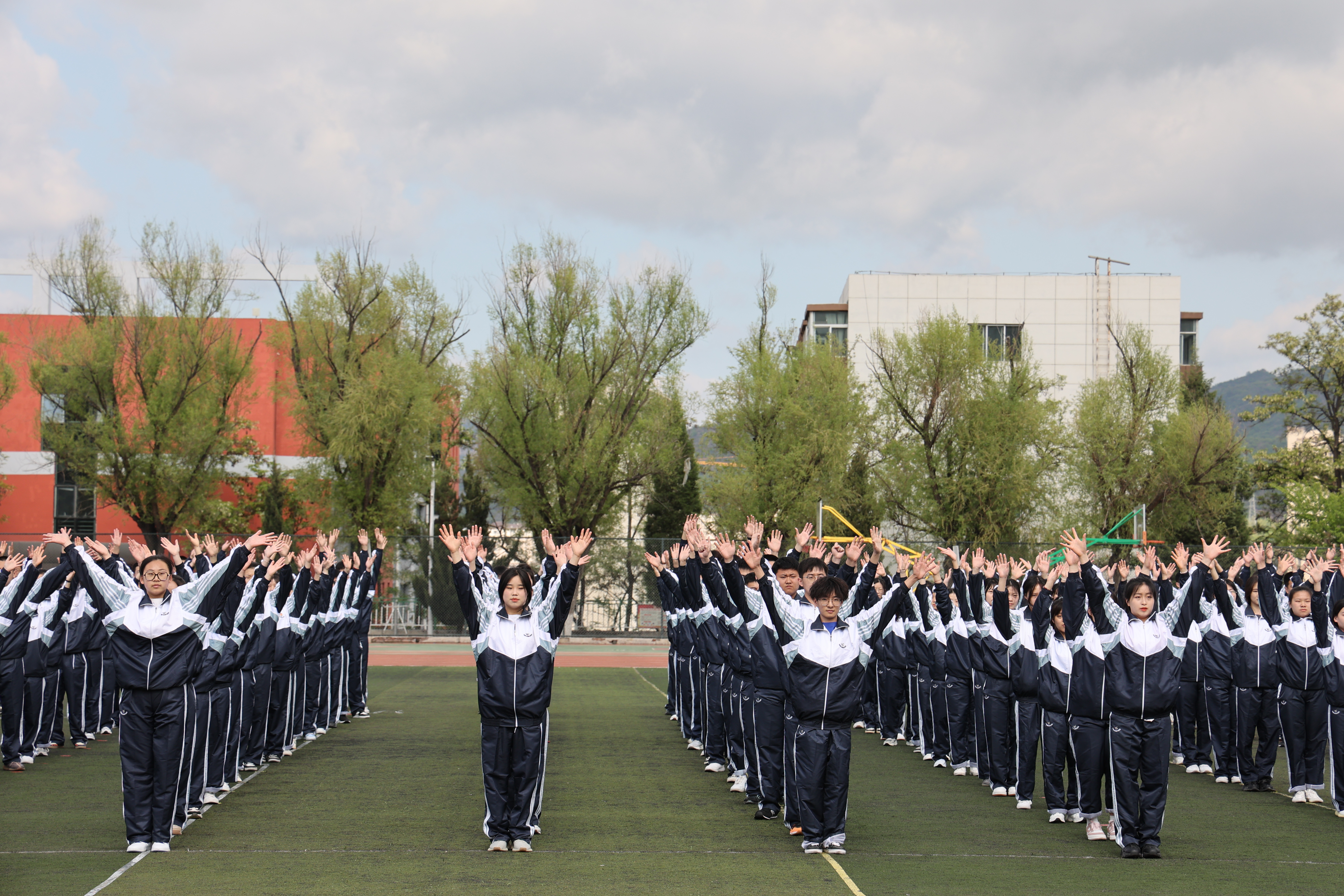 开幕式上,同学们还表演了精心准备的“”青春、绽放、飞翔”三个乐章的团体操。(思政部)