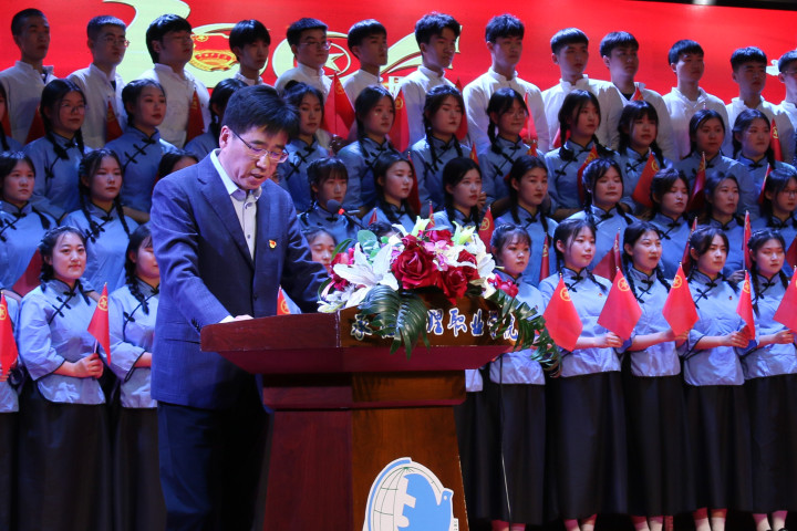 党委书记高中卫代表校党委致辞。他首先代表校党委,向全校团员青年致以节日的问候!向受表彰的集体和个人表示热烈的祝贺!向长期以来重视和支持威尼斯共青团工作,关心和帮助青年学生成长成才的各位领导、老师和有关同志表示感谢!和全体师生一起回顾了中国共产主义青年团宣告成立100年来,在中国共产党的领导下,发挥自身优势,团结带领广大团员青年,推动中国青年运动始终沿着与民族同命运、与祖国共奋进、与时代齐发展的方向前进取得的成就和4月25日总书记在中国人民大学调研座谈中寄语“广大青年要做社会主义核心价值观的坚定信仰者、积极传播者、模范践行者,向英雄学习、向前辈学习、向榜样学习,争做堪当民族复兴重任的时代新人,在实现中华民族伟大复兴的时代洪流中踔厉奋发、勇毅前进。”