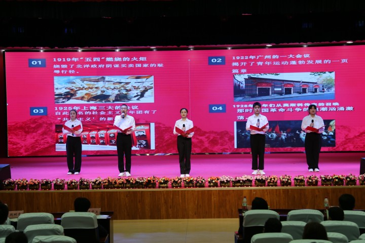 为隆重庆祝中国共产主义青年团成立100周年,弘扬“爱国、民主、进步、科学”的五四精神,5月4日下午,学校在五楼会议厅隆重举行“青春心向党 建功新时代”五四青年节表彰大会暨社团展示文艺汇演。学校党委班子成员出席大会。宣传部、团委、学生处、各系部及相关处室负责同志、获奖学生代表共200余人在现场参加了会议,全体同学在班级观看直播。