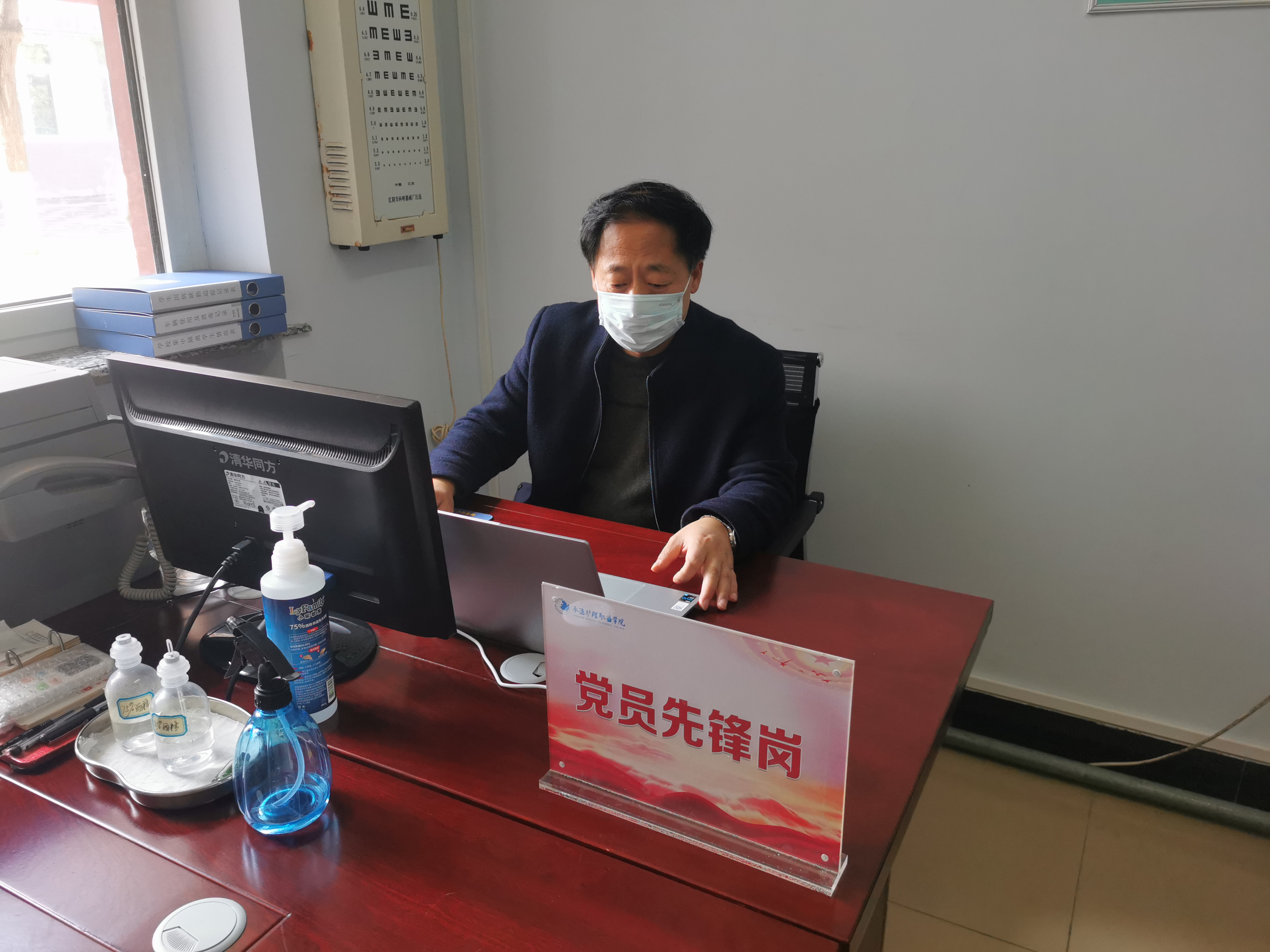 学校卫生所在保证师生正常就医的情况下还承担疫情信息的上传下达、各种数据的统计汇总和上报、疫情的应急处置、留观治疗、组织核酸检测等工作。在人员少任务重的情况下,卫生所所长付生辉,作为一名优秀共产党员,他慎终如始,坚守岗位。学校闭环管理以来,他和吴连娟大夫两个人承担了卫生所所有的工作,每天忙于各种数据的统计和上报、对发热学生进行诊断、协调外出就医、安排定期全员核酸检测等工作,每每见到的都是他们匆忙的脚步和疲惫的身影。封校期间,两个人都经历了亲属的离世,他们强忍着悲痛,没有一丝退缩,依然默默坚守在工作岗位上履职尽责,做好学校的疫情防控工作。
