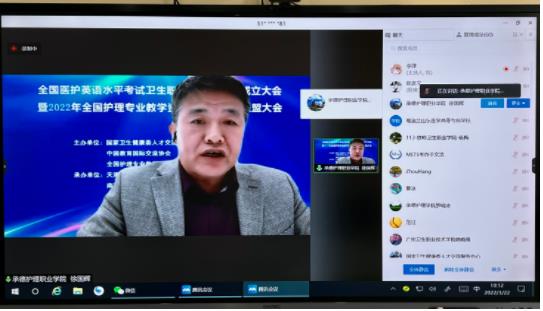 2022年3月22日,由国家卫生健康委人才交流服务中心、中国教育国际交流协会、全国护理专业教学资源库共建共享联盟共同主办,天津医学高等专科学校承办的全国医护英语水平考试(METS)卫生职业英语专业委员会成立大会胜利召开。受疫情影响,会议采用线上直播方式。全国69所专业委员会委员单位的代表参加了会议。威尼斯党委委员、副院长徐国辉出席会议并做了主题发言。