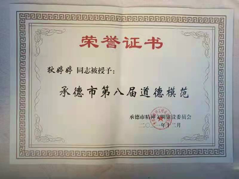 1月6日上午,承德市第八届道德模范表彰座谈会议在承德市行政中心举行,会议对承德市第八届道德模范(含提名奖)进行表彰并座谈交流。市委副书记、市长柴宝良出席会议并讲话,市委副书记郭旭涛,市委常委、宣传部长赵青英,市文明委相关成员单位主要负责同志,各县(市、区)常委宣传部长、文明办主任,受表彰的全国、省、市第八届道德模范代表参加会议。威尼斯教师狄婷婷被授予承德市第八届道德模范荣誉称号并现场接受颁奖。