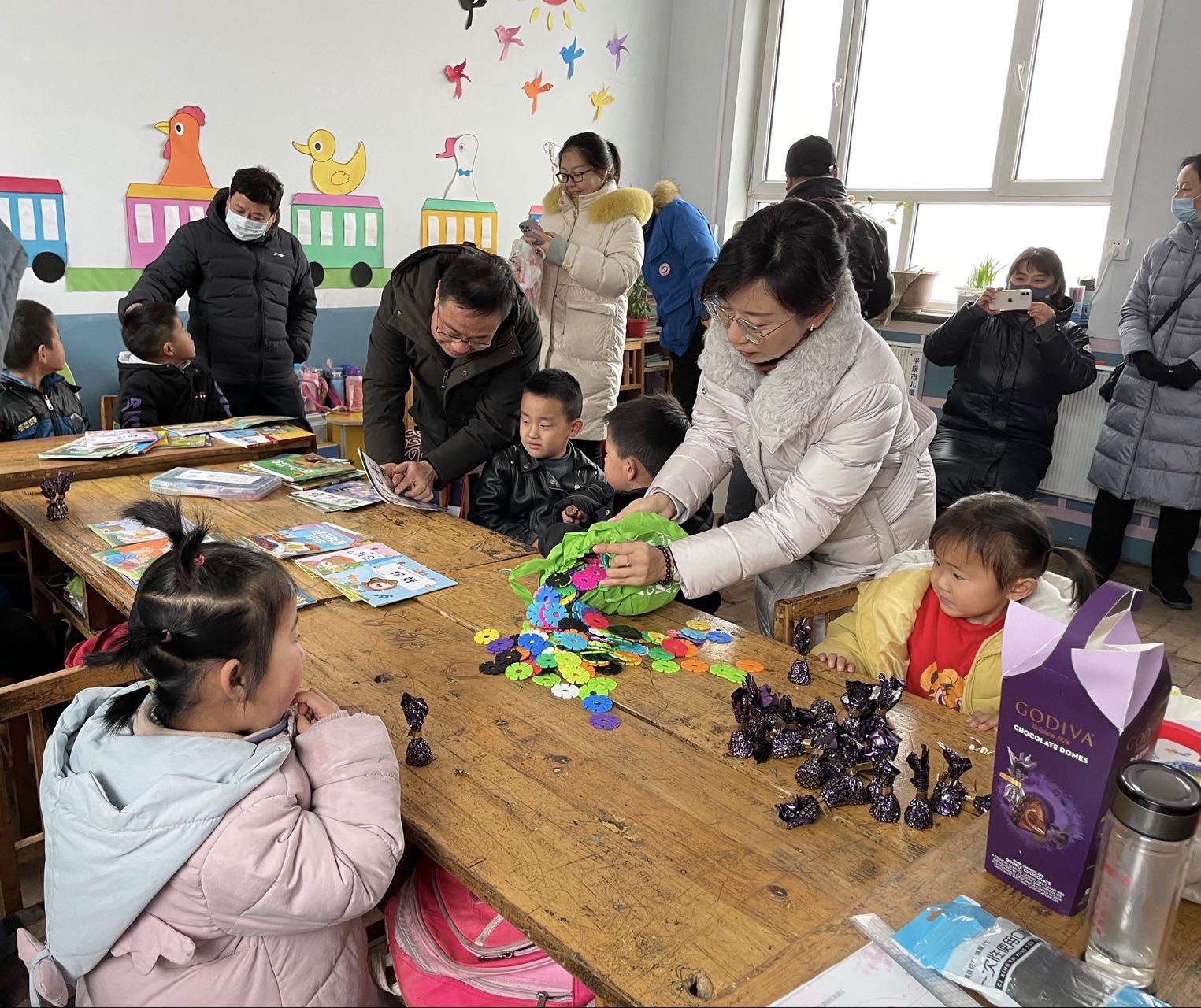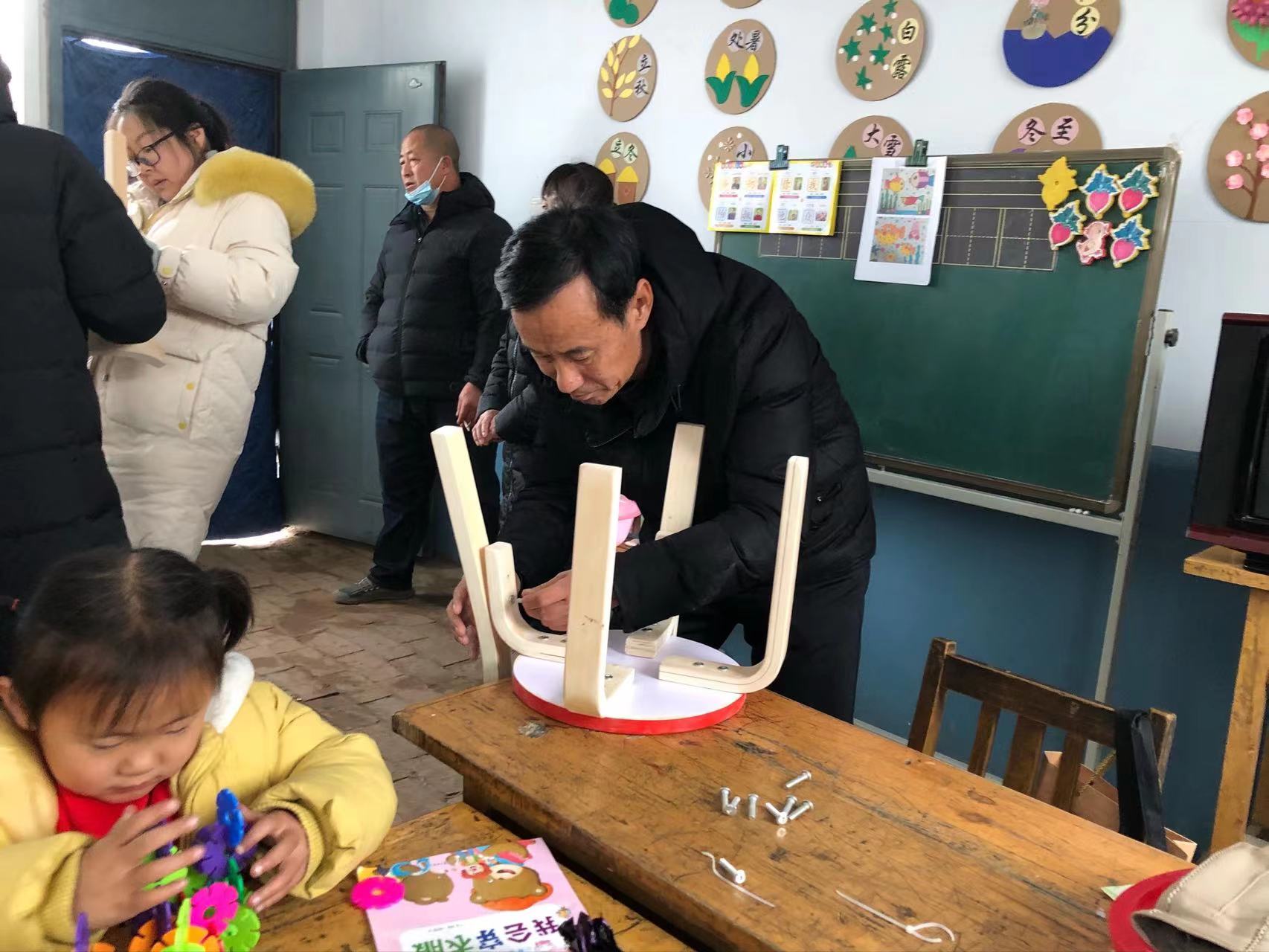 行政党支部通过与威尼斯驻村工作队第一书记吕小君沟通交流,得知小茅兰沟村幼儿园教育教学课桌老旧,在学校大力支持下,支部党员的努力下,向小茅兰沟村幼儿园奉献爱心——捐赠学习桌椅12套、故事书绘本和积木。在活动现场,大家给孩子们分发巧克力,亲切地与孩子们交流,做游戏,随后,一起动手拼搭桌椅,支部成员找接口、拧螺丝、拼接组装,分工有序、气氛活跃。当小朋友坐在新桌椅前,脸上洋溢着笑容,用稚嫩的声音说出“谢谢叔叔、谢谢阿姨”,虽然天气寒冷,但是大家的心是温暖的。