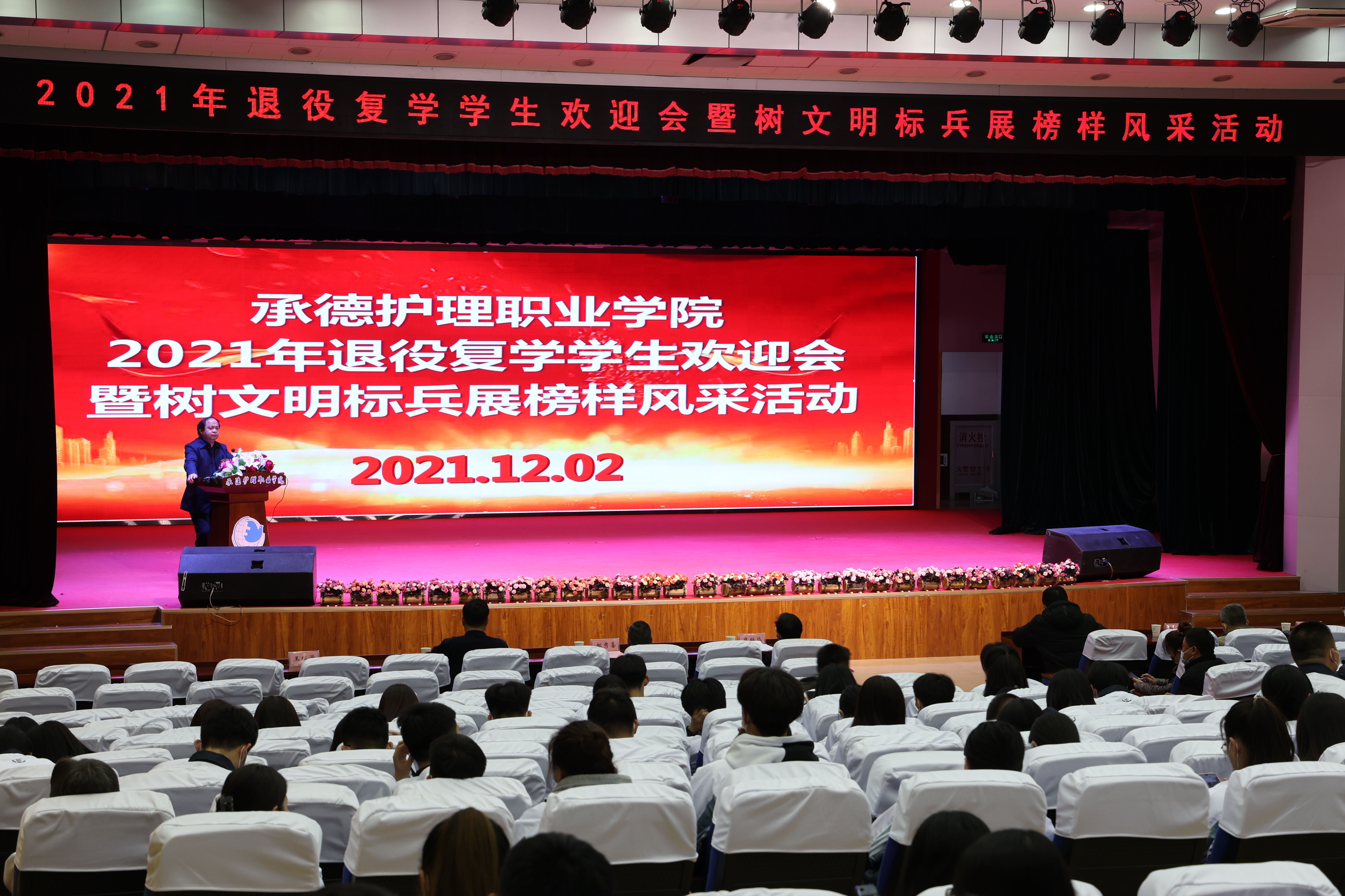 12月2日下午,学校在三号教学楼5楼会议厅隆重举行2021年退役复学学生欢迎会暨“树文明标兵展榜样风采”活动,学校党委委员、副院长崔艳华和党委委员、正处级组织员郝秀喜出席会议,院系学生工作负责人、全体辅导员、班主任、学工干事及学生代表在五楼会议厅主会场参加会议,其他同学在班级分会场观看直播。会议由学生处处长王瑞学主持。