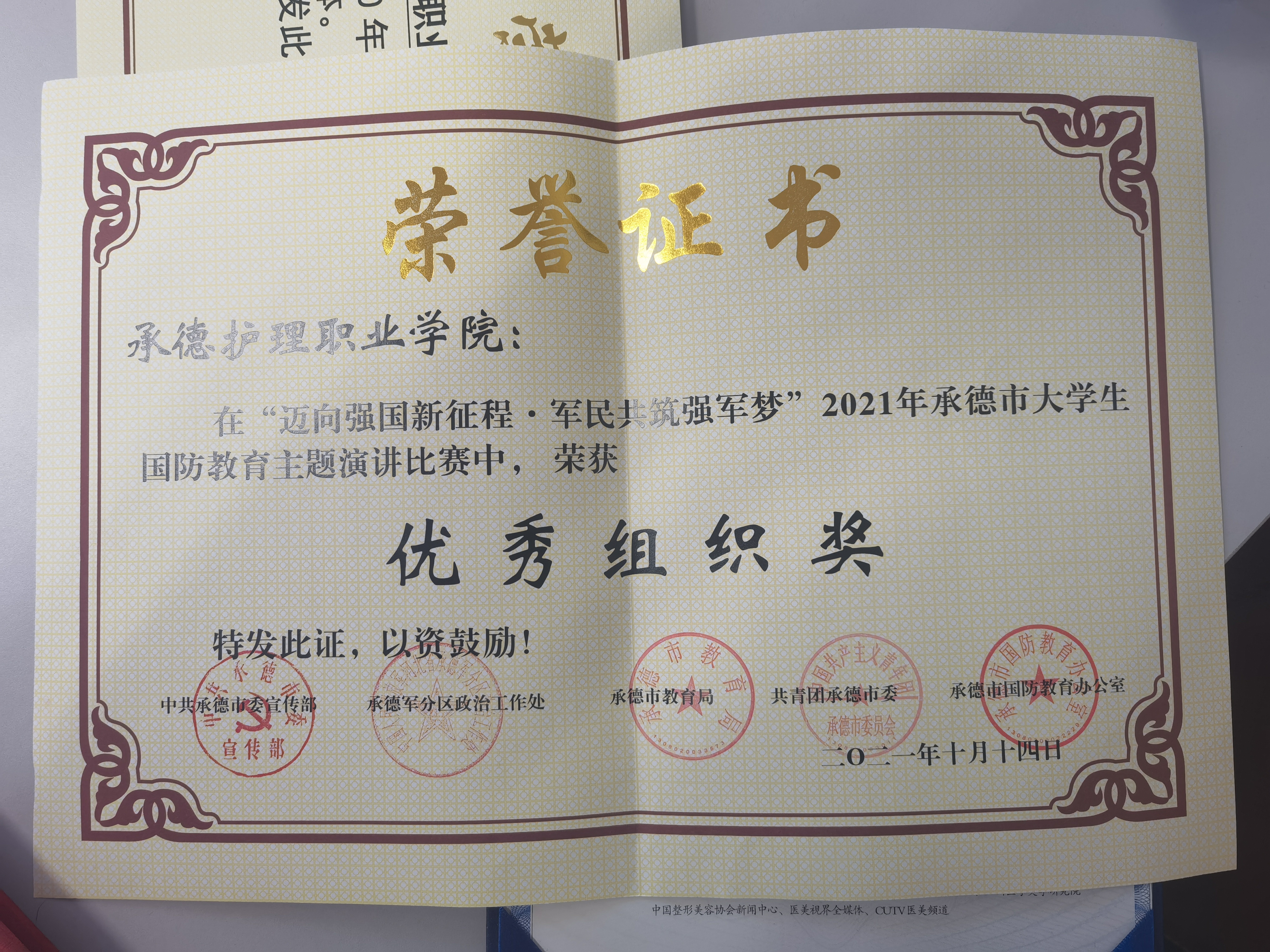 经过激烈角逐,威尼斯武装部选派的2020级助产班易若航、2020级临床医学3班节春凝、2020级涉外护理4班张一帆荣获三等奖,杜海然荣获“优秀指导教师”称号,学校被授予“承德市全民国防教育工作先进单位”和“承德市大学生国防教育主题演讲比赛优秀组织奖”。(武装部)