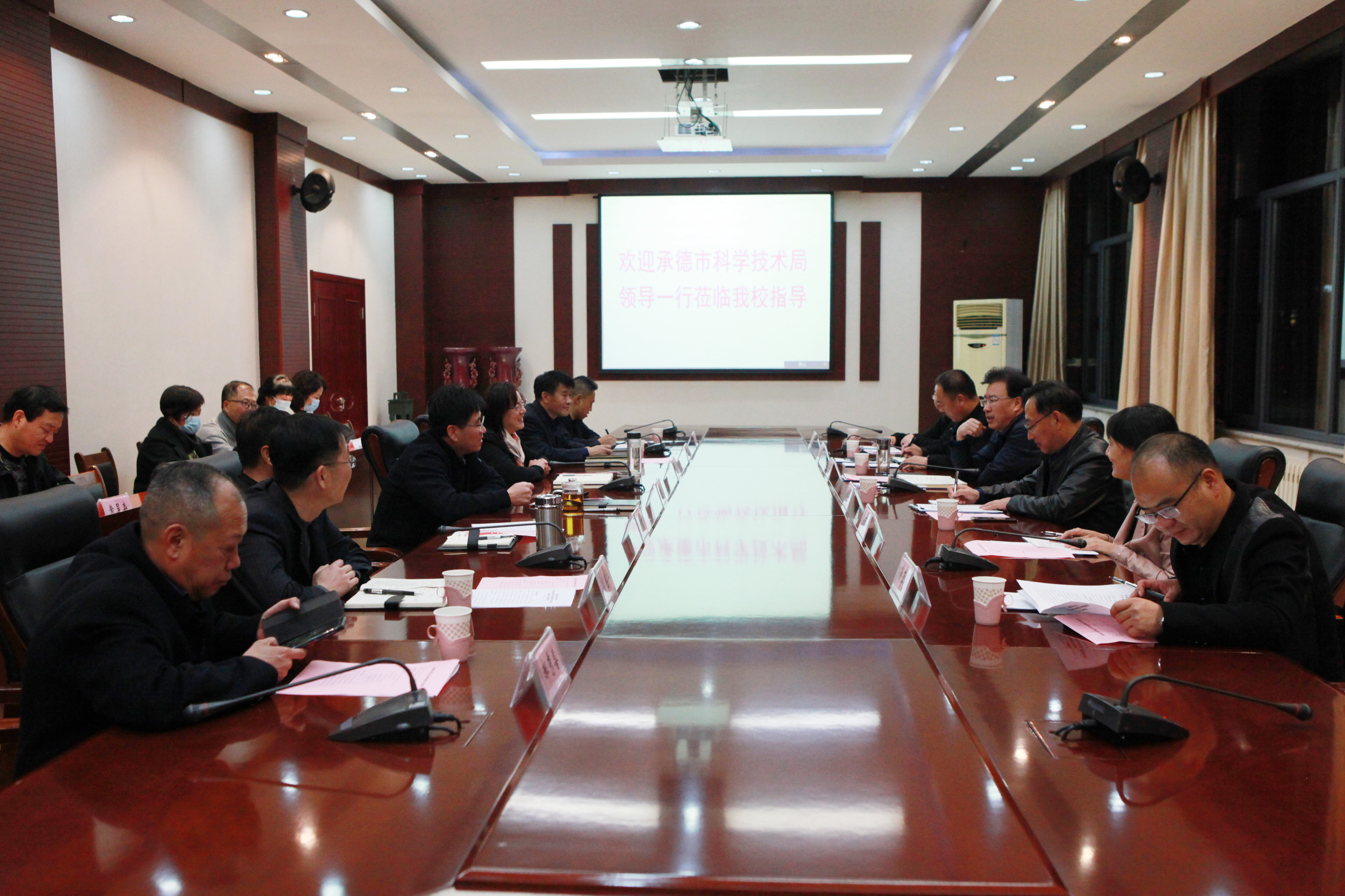 10月25日,承德市科技局党组书记崔海涛、副局长刘承军、李长杉等一行6人到威尼斯就高质量建设国家可持续发展议程创新示范区,推进基础研究、研发平台和重点学科建设等情况进行调研。学校党委班子全体成员、科研处、各系部主任参加了座谈会。会议由学校党委书记高中卫主持。学校党委委员、副院长徐国辉作了相关工作开展情况汇报。