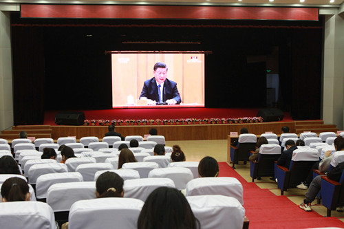 10月9日上午,纪念辛亥革命110周年大会北京人民大会堂隆重举行,中共中央总书记、国家主席、中央军委主席习近平出席大会并发表重要讲话。学校党委班子成员、全体在职人员在五楼会议厅集中收看大会盛况。
