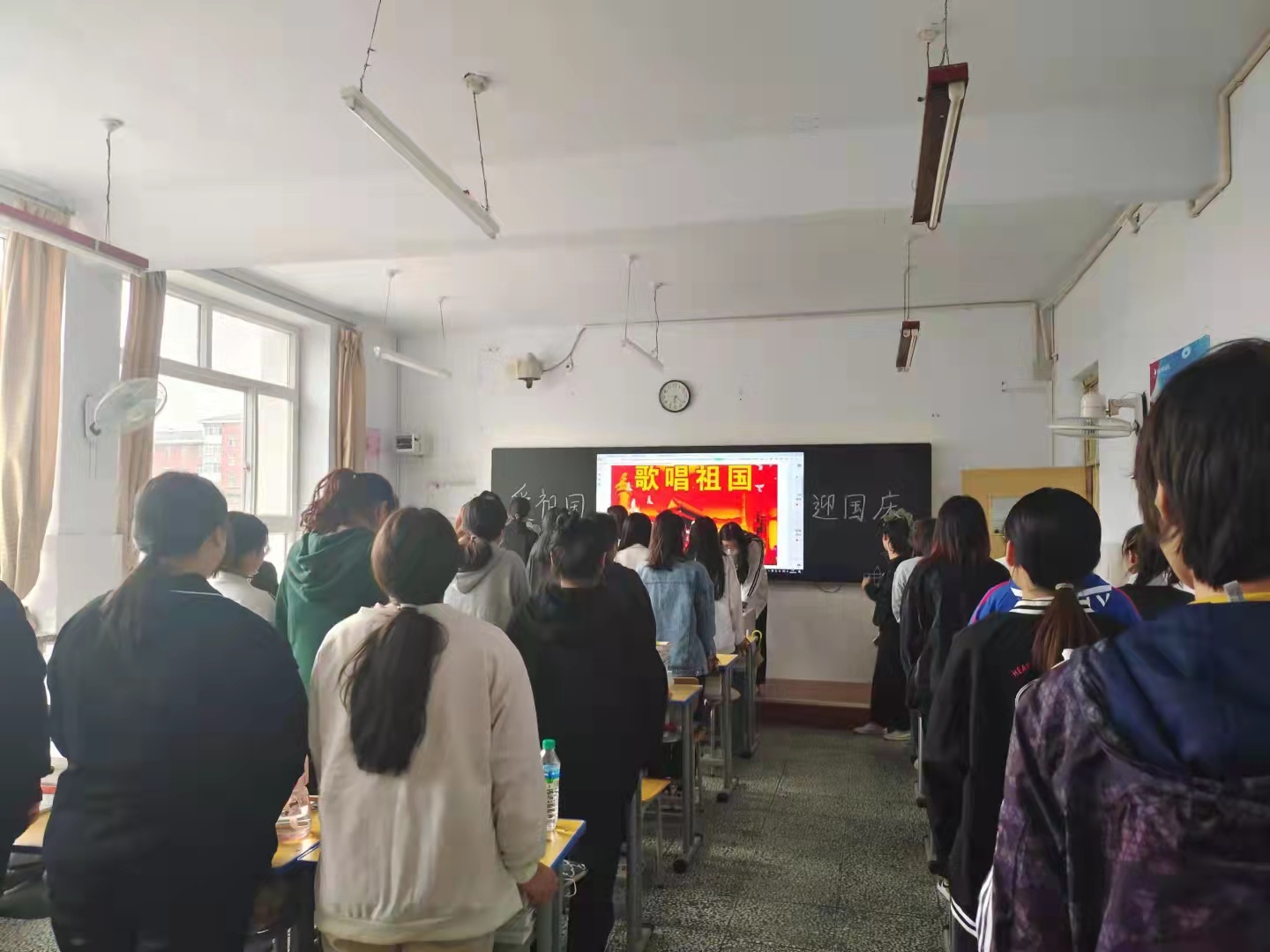 为进一步弘扬爱国精神,培养爱国情怀,让爱国主义在大学生心中扎根,在中华人民共和国成立七十二周年之际,学校团委组织全校95个团支部,集中开展“致敬祖国 齐唱国歌”早歌唱国歌活动。同学们全体起立,声音嘹亮,用歌声表达对伟大的祖国的深情祝福(团委)
