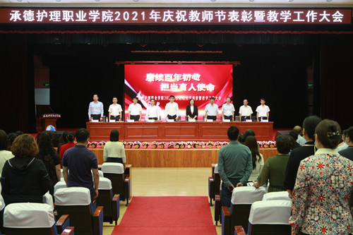 在庄严的国歌声中,表彰大会拉开帷幕。党委委员、副院长徐国辉作教学工作报告,他从2020-2021年教学科研工作的回顾和本学期教学科研的重点工作两个方面作了详细报告。梳理了上学期学校教学总体情况、教育教学改革取得的成绩,对本学期教学工作做出新的安排,在本学期这个十四五规划开局之年的关键学期,继续坚持社会主义办学方向,坚持立德树人根本任务,牢记为国育人、为党育才的初心与使命,凝心聚力,鼓足干劲,再创教育教学新佳绩,共同奋力书写十四五时期学校改革发展新篇章。