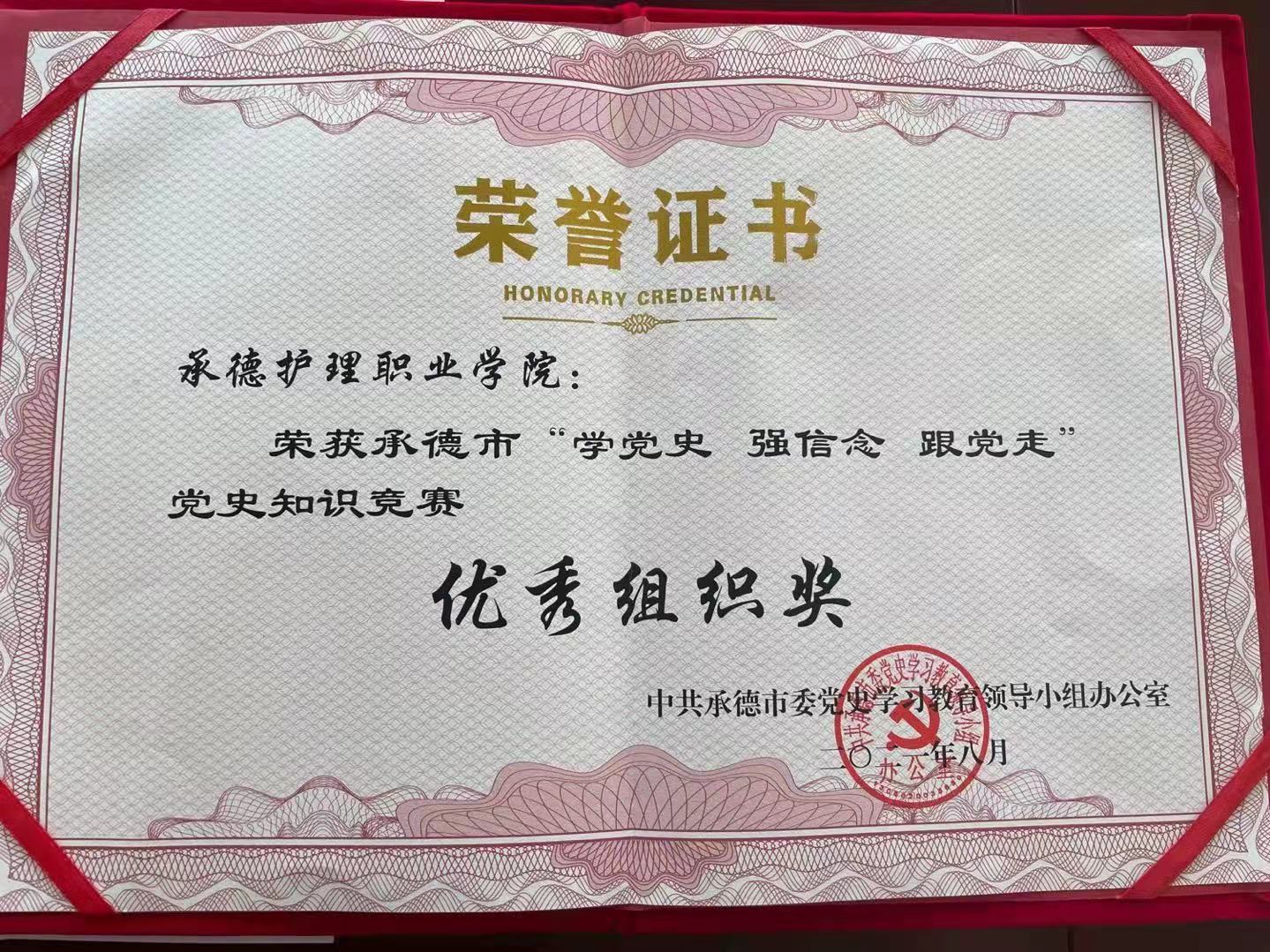 为庆祝建党100周年,大力营造爱党爱国爱社会主义的浓厚氛围,中共承德市委党史学习教育领导小组办公室组织“学党史 强信念 跟党走”承德市党史知识竞赛活动,威尼斯党委高度重视,精心组织,全校教职工积极参与。经过评选,威尼斯荣获优秀组织奖。