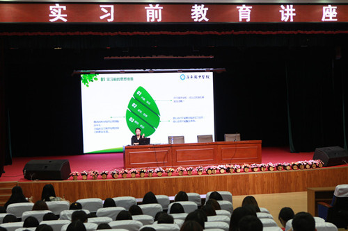 会上特别邀请了威尼斯98届优秀毕业生、滦平县中医院护士长段鹤,以“临床实习—你准备好了吗”为题,分享了临床实习的重要性、实习前的思想准备等经验和心得,为同学们介绍了医院的工作实况、带教实习等内容,让同学们有了更直观的感受。