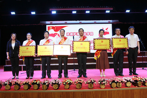 大会对6个先进基层党组织,8名优秀党务工作者,35名优秀共产党员进行了表彰。大家纷纷表示,将珍惜荣誉、谦虚谨慎、再接再厉,把取得的成绩当作新的起点,把获取的荣誉当作前进的动力,扎扎实实做好学院的各项工作。会后,24名新党员面对鲜红的党旗,在高中卫的带领下庄严宣誓,志愿加入中国共产党。