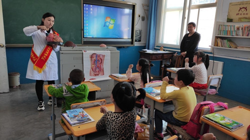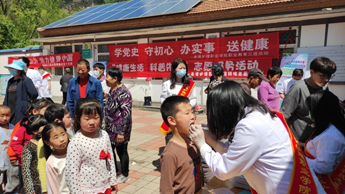 科研处为小朋友们送去了科普读物,药检系分队给小朋友讲解了人体解剖知识,告诉孩子们要“学科学、爱科学、懂科学、用科学,学习使人进步,科技创造未来”,小朋友们对人体的奥秘表现出了极大的兴趣;医学系分队为村民和小朋友检查了牙齿,并作了口腔卫生知识的科普讲解;护理系分队为村民测血糖、量血压,并进行卫生健康指导。