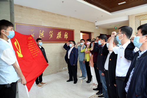 参观结束后,在纪念馆一楼大厅内,全体参观党员面对鲜红的党旗,由党委副书记赵树才领誓,再一次重温了入党誓词。