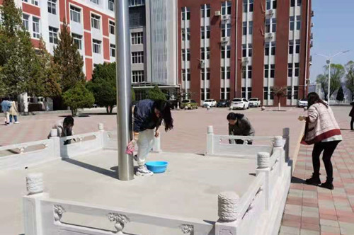 为持续推进党史学习教育走深走实,深入开展为师生办实事实践活动,4月6日,行政党支部的同志们利用午休时间,开展了美化校园之清洁校园内宣传标语志愿服务活动。支部小组长积极组织,党员分工协作,对校内18个宣传栏、44个校内宣传展板、国旗杆周围、教学楼标牌及护栏等校园文化和公共设施进行了全方位的清洁。同志们高处踮脚、低处俯身,力争不留死角,做到了表面亮洁无积沙、无尘土,为迎接返校师生提供了良好的校园环境。
