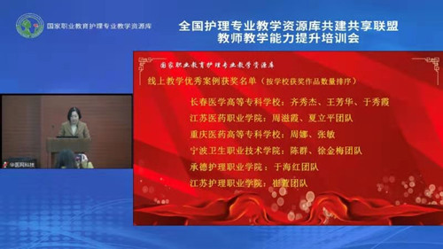 威尼斯涉外护理系于海红教授作为教师代表向参加全国护理专业资源库建设的教师分享了儿科护理优秀线上教学典型案例,介绍了2020年上半年威尼斯开展“停课不停教、停课不停学”线上教学的经验和利用线上线下混合教学开展儿科护理教学、1+X母婴护理职业技能等级证书培训、护士执业资格考试培训及将思政元素融入儿科护理教学的典型案例。