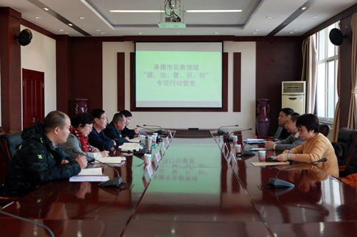 12月23日,市委统战部副部长郭紫金、市统战部干部人事科科长魏巍、市民宗局民族经济科科长胡岳峰来威尼斯就承德市宗教领域“提、治、管、引、领”专项整治行动进行督导检查并召开座谈会。学院党委副书记赵树才、党委委员、正处级组织员郝秀喜出席座谈会,宣传部、安全工作处负责同志参加座谈。