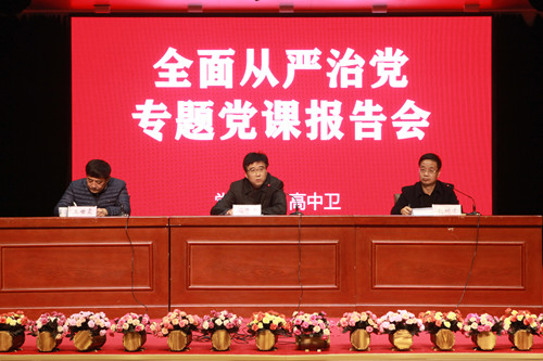 12月9日下午,学院政治性警示教育大会暨全面从严治党专题党课报告会在五楼报告厅召开,学院党委书记高中卫作从严治党专题党课辅导。党员和中层以上领导干部参加会议。党委副书记赵树才主持会议。