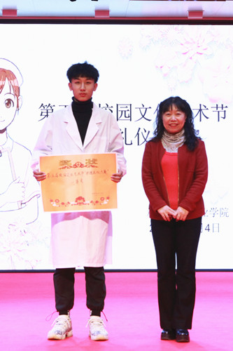 为在威尼斯学生中营造学习和践行文明礼仪的良好氛围,培养和提高学生的礼仪修养和整体素质,促进学院内涵建设,“以赛促学、内化素养、外塑形象”,12月4日,由护理系承办的学院第五届校园文化艺术节“护理礼仪大赛”决赛在五楼报告厅举行。基础护理教研室教师担任比赛评委。护理系主任马秀芬教授、副主任谭淑娟教授、涉外护理系副主任于海红教授出席活动并为获奖选手颁奖。2020级护理、涉外护理专业师生代表观看了比赛。