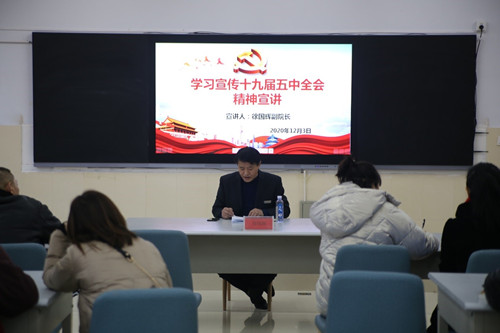 12月3日,学院党委委员、副院长徐国辉为医学系全体教师、教务处、科研处及国际护士培训中心全体党员作学习贯彻党的十九届五中全会精神宣讲报告。