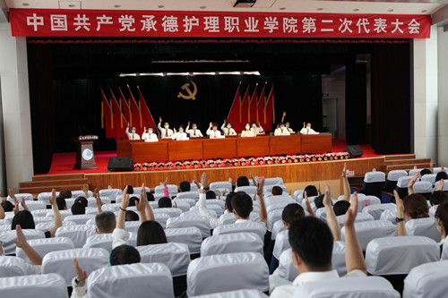 本次大会的主题是:高举中国特色社会主义伟大旗帜,以习近平新时代中国特色社会主义思想为指导,深入学习贯彻党的十九大、十九届二中、三中、四中全会精神,团结动员全院师生员工,全面深化改革,加快创新发展,为建设高质量有特色的一流护理职业院校而努力奋斗。