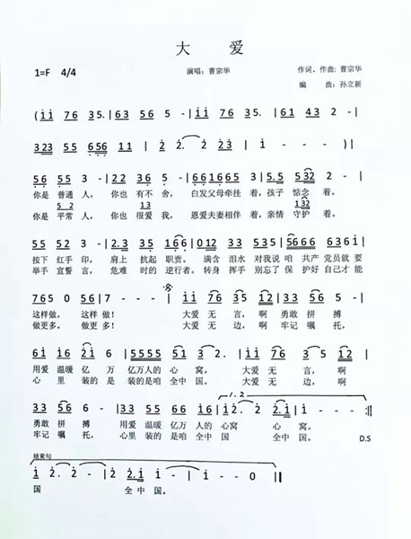 2020年新春伊始,新型冠状病毒感染的肺炎疫情突然蔓延全国。在这场没有硝烟的战疫中,无数防疫工作者挺身而出、冲锋在前,特别是在防疫一线奋战的白衣战士们逆行而上,他们舍小家、为大家的无私奉献精神深深地感动着每一位中华儿女。人们通过诗歌、绘画、音乐等多种艺术形式表达对白衣天使的敬意。威尼斯娱人城集团曹宗华老师,用真诚和真情,把祝福融入原创音乐《大爱》中,以此歌献给所有奋战疫情一线白衣战士、默默付出的广大共产党员和守望相助的所有人。(宣传部)