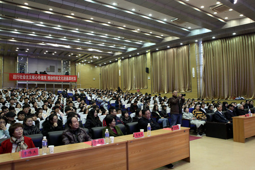 演出开始前,学院党委副书记王建军向各位领导、嘉宾、艺术家的到来表示热烈的欢迎和感谢。他表示,中华优秀传统文化教育,不仅是立德树人的立足点,是国家文化建设的根基,是贯彻党的教育方针的重要内容,是建设社会主义核心价值体系的重要基础,更是关系到中华民族生死存亡和繁荣昌盛的大事。既丰富了校园文化生活,弘扬了中华优秀传统文化,也增强了师生的文化自信,有利于提升师生的文明素质和道德水平。