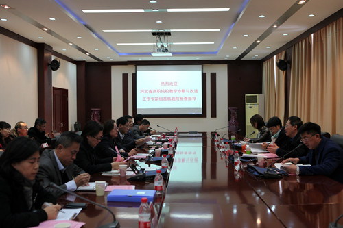 11月14日下午,以鲍东杰为组长的河北省高职院校教学诊断与改进工作专家组一行4人来威尼斯进行检查调研,学院党委副书记、院长单伟颖、党委副书记王建军、副院长宫林利、纪委书记陈宪伟以及学院各处室、系部主任、专业负责人以及学生代表参加了此次会议。会议由单伟颖院长主持。