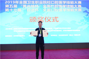 2019年7月19-22日,第十七届“日进杯”全国口腔医学技能大赛在美丽的山东枣庄举行。我系2017级口腔医学专业刘鹏举、闫安两名同学轻松上阵,在激烈的竞争中过关斩将,分获牙体制备组二等奖、三等奖,刘鹏举同学获得个人单项三等奖。