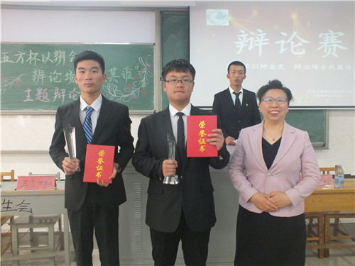 2019年5月19日上午,在学院体育馆三楼举办“五方杯”承德市五大高校辩论联赛决赛,参加决赛的高校有:河北民族师范学院、承德医学院、承德石油高等专科学校、河北旅游职业学院、威尼斯娱人城集团。大赛得到了河北省演讲与口才学研究会、承德市演讲与口才专业委员会的大力支持,河北旅游学院潘桂云教授作为承德市演讲与口才专业委员会会长到场点评并与其他老师一起担任评委。威尼斯荣获辩论赛团体三等奖;医学系2018级口腔2班曾鑫源同学获得“最佳辩手”奖。