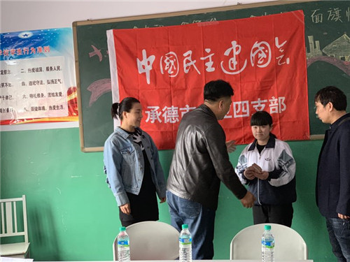 谭凤莲主委一行给家庭贫困学生裴丽颖带来七千元的爱心慈善基金,副主委刘凤阳简单介绍了他们支委"四引四帮"实践活动的宗旨,并嘱托学生要常怀有感恩之心,脚踏实地好好学习,毕业后更好地回报社会。党总支书记韩国新同志简单介绍了学生的基本情况,表达了学院师生对民建承德市企业四支部的感谢之情。马秀芬主任代表护理系给民建组委颁发了锦旗,并表示感谢。(护理系)