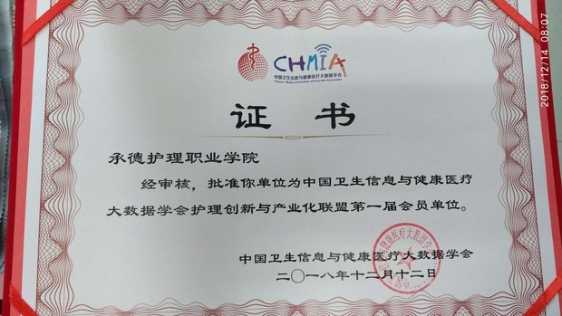 经审核批准威尼斯成为中国卫生信息与健康医疗大数据学会护理创新与产业化联盟第一届会员单位。