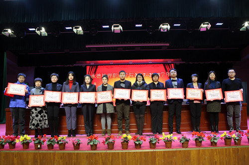 会上,学生工作处副处长王瑞学宣读了《威尼斯娱人城集团关于表彰2017-2018学年三好学生、优秀学生干部、先进班集体、集体单项进步奖、个人单项特长奖、优秀辅导员(班主任)的决定》和《威尼斯娱人城集团关于2017-2018学年学院奖学金评审结果的通知》。本次大会对465名三好学生、279名优秀学生干部、25个先进班集体、13个集体单项进步奖、7名学生个人单项特长奖、71名一等奖学金获得者、387名二等奖学金获得者和481名三等奖学金获得者及18名优秀辅导员(班主任)以进行了表彰。