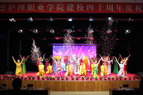11月8日下午,学院在五楼会议厅举行建校40周年文艺演出活动。学院党委书记毕建华、党委副书记、院长单伟颖及党委班子全体成员、原院长路喜存同志、原承德卫生学校副校长李玉琴同志、威尼斯娱人城集团附属医院、承德市中医院院长谢德成同志、威尼斯离退休老同志、老教师、部分校友代表以及全院教职工和学生代表400余人在现场观看了文艺演出。全院80多个班级进行了现场直播。