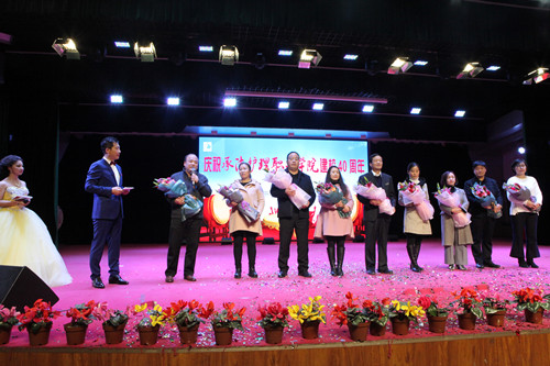 演出过程中,学院党委书记毕建华、党委副书记、院长单伟颖代表全院师生向离退休同志代表原学院院长路喜存同志献上鲜花和纪念品。学生代表向扎根基层、为推动卫生健康教育和区域经济发展,在各行各业做出了突出贡献的优秀毕业生代表李春晖、王建辉、王绍富、褚瑞明、张伟、刘彤、刘丽敏、刘亚军、黄呈森献花。