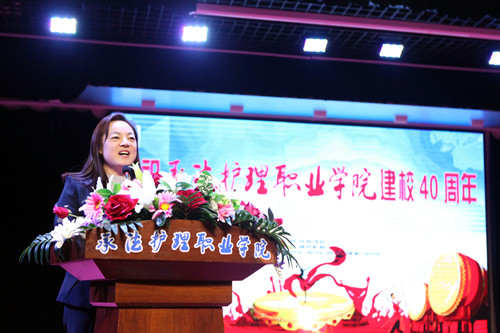 2018年,学院迎来建校四十周年华诞,11月8日下午,建校四十周年庆祝大会在会议厅隆重举行,学院党委书记毕建华、党委副书记、院长单伟颖及党委班子全体成员、原院长路喜存同志、原承德卫生学校副校长李玉琴同志、威尼斯娱人城集团附属医院、承德市中医院院长谢德成同志、威尼斯离退休老同志、老教师、部分校友代表以及全院教职工和学生代表400余人参加了庆祝大会。大会由学院院长单伟颖教授主持。全院80多个班级进行了现场直播。
