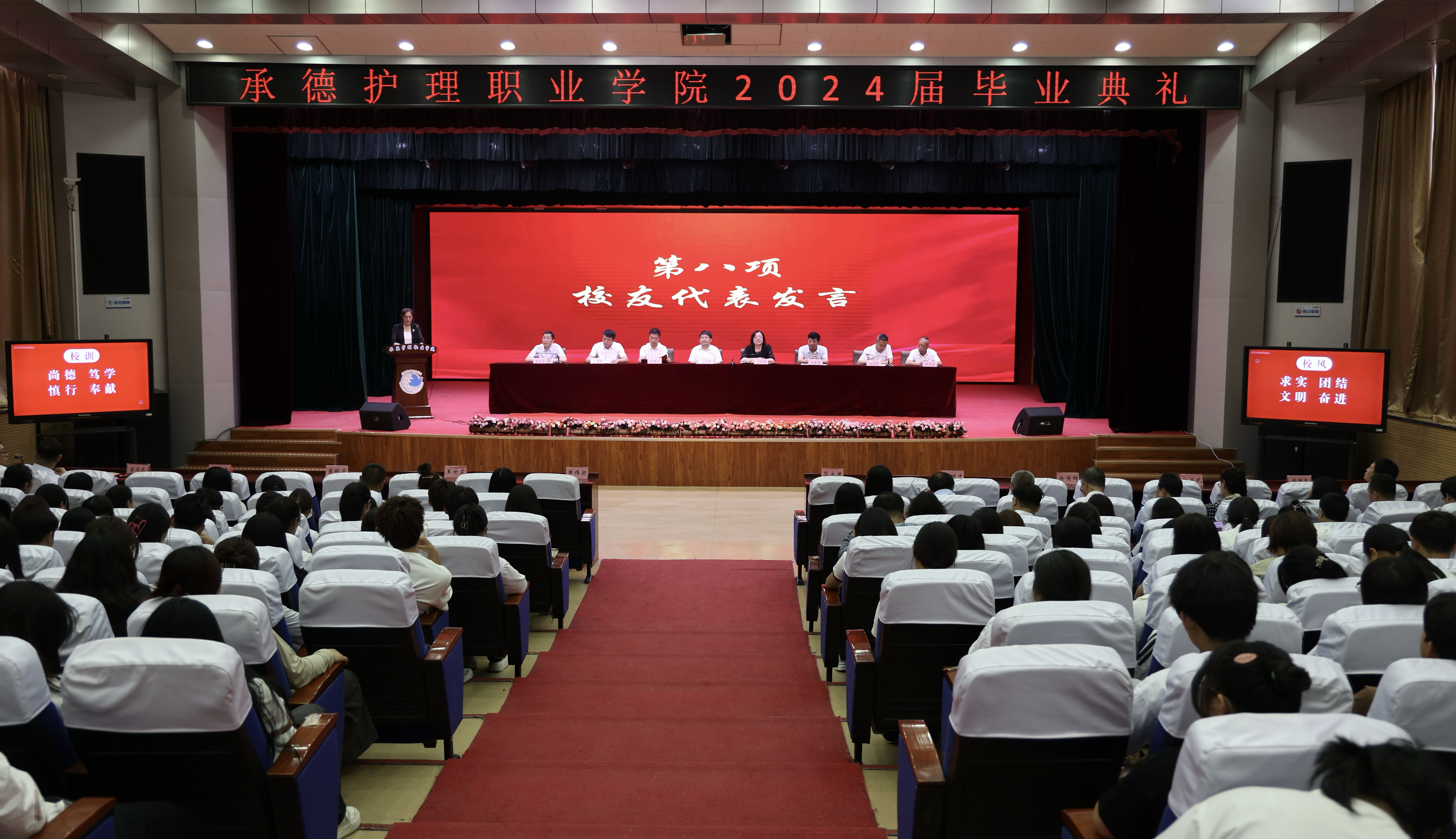 医学技术系2021级药学1班赵泽媛同学代表毕业生发言。她深情回顾了在承德护理职业学校的三年求学时光,表达了对母校、老师、同学的感激之情,表示将秉承医学生的使命,牢记“尚德、笃学、慎行、奉献”的校训,仰望星空、脚踏实地,在工作岗位上,践行“健康所系,性命相托”医学生誓言,以昂扬奋进的姿态展现青年人的责任与担当,续写母校的绚丽华章。