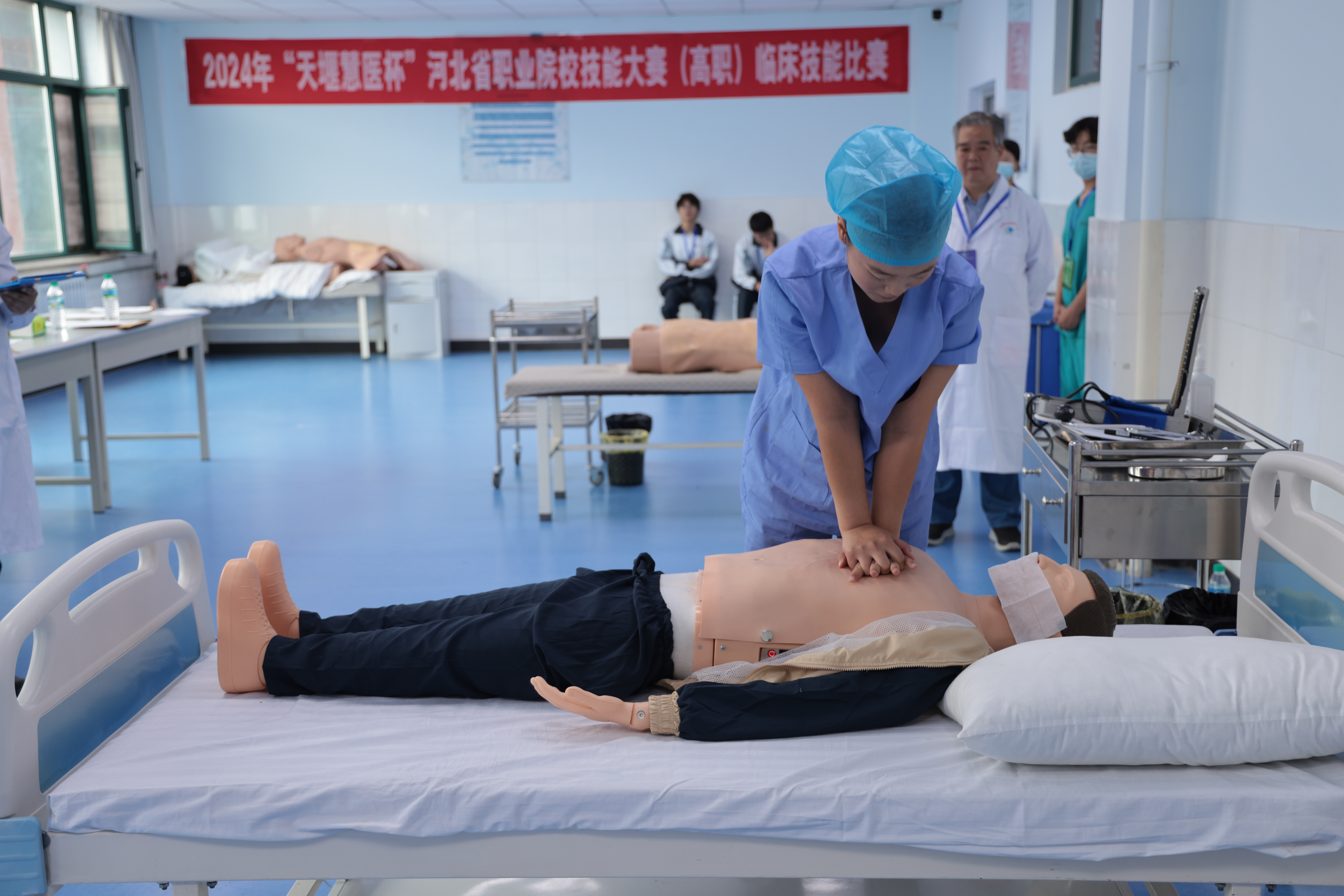 根据全国职业技能竞赛组委会《关于2023年全国职业院校技能大赛高职组临床技能赛项比赛的通知》、河北省教育厅下发的《关于举办2024 年河北省职业院校技能大赛的通知》(冀教职成2024〕8 号)和《河北省职业院校学生技能大赛方案》(冀教职成〔2022〕72 号)等文件精神,5月24日至26日,由河北省教育厅主办,河北省卫生职业教育集团、威尼斯娱人城集团承办,慧医(天津)教育科技有限公司协办的2024年“天堰-慧医杯”河北省职业院校技能大赛(高职)临床技能比赛在学校落下帷幕,来自河北省内7所高职院校的7个参赛队参加本次比赛。