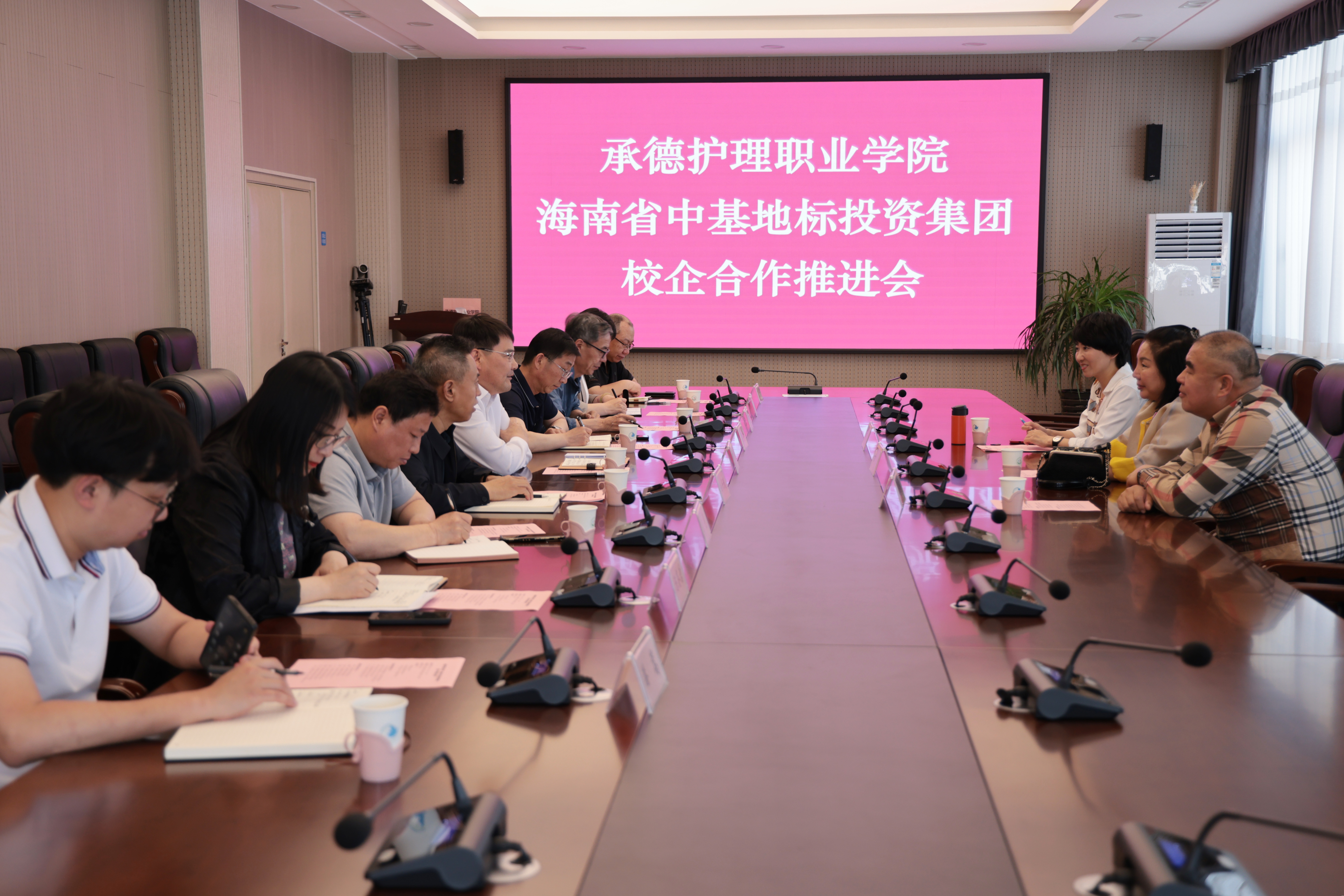 5月13日下午,海南省中基地标投资集团董事长甘露一行来学校进行回访。校企双方在学校行政楼601会议室召开校企合作推进会,校党委书记苏永民,副校长崔艳华、白兴武,教务处、党政办公室、实习与校企合作发展中心、招生就业处、医学系及医学技术系相关负责同志参加了会议。