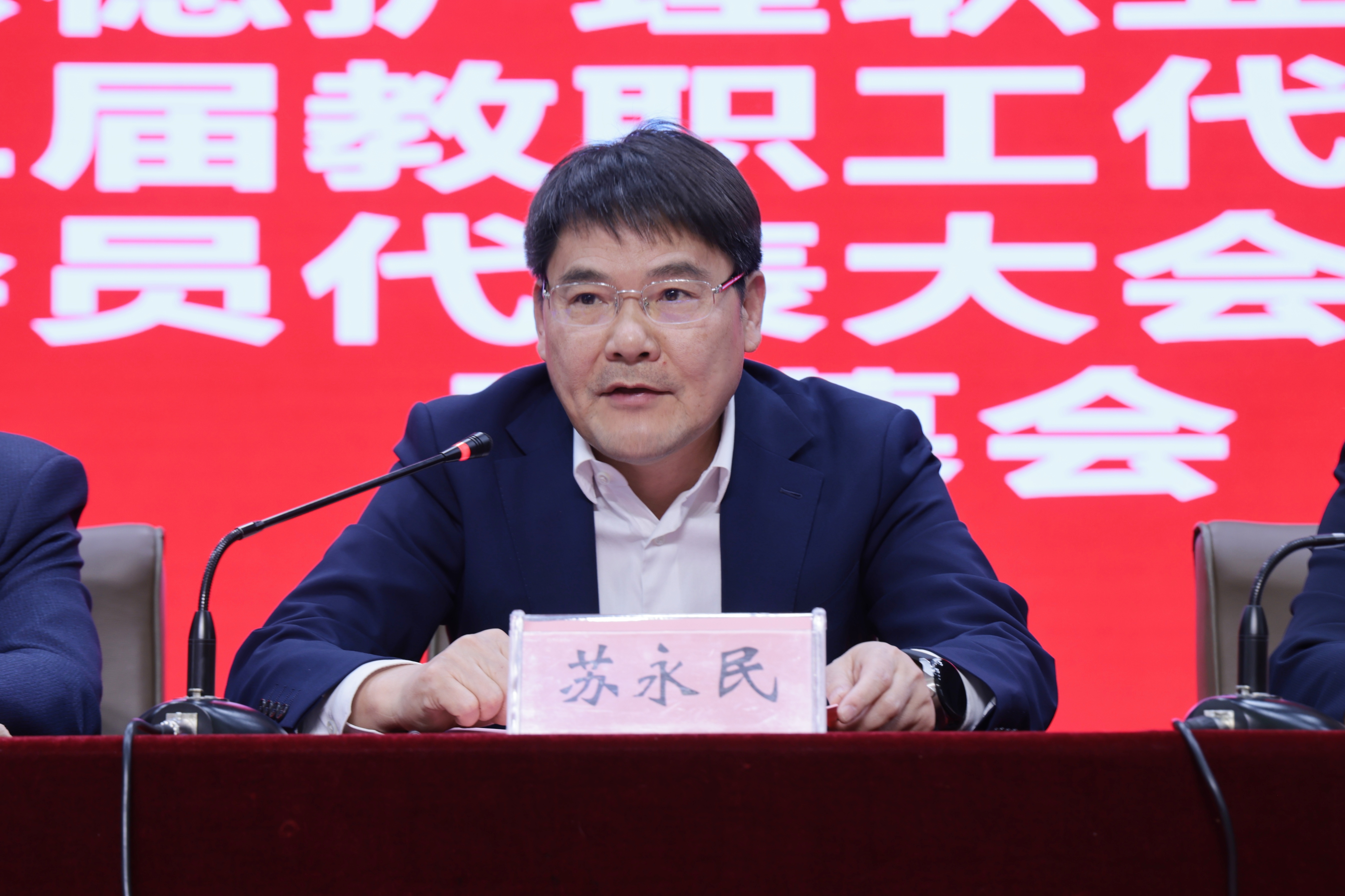 大会主席团主席、学校党委书记苏永民讲话